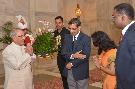 The President of India, Shri Pranab Mukherjee meeting with Dr. (Prof.) Ajay Kumar Ray, Principal, Murshidabad Medical College & Hospital alongwith his family members, at Rashtrapati Bhavan on September 24, 2016.