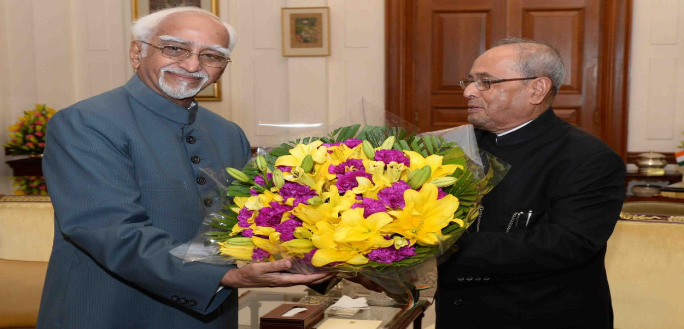 The President of India, Shri Pranab Mukherjee meeting with the Vice President of India, Shri Mohd. Hamid Ansari, at Rashtrapati Bhavan on August 17, 2016.