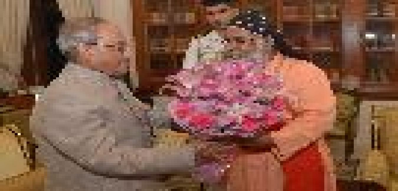 The President of India, Shri Pranab Mukherjee meeting with Smt. & Dr. K. Bharamchari, at Rashtrapati Bhavan on August 13, 2016.