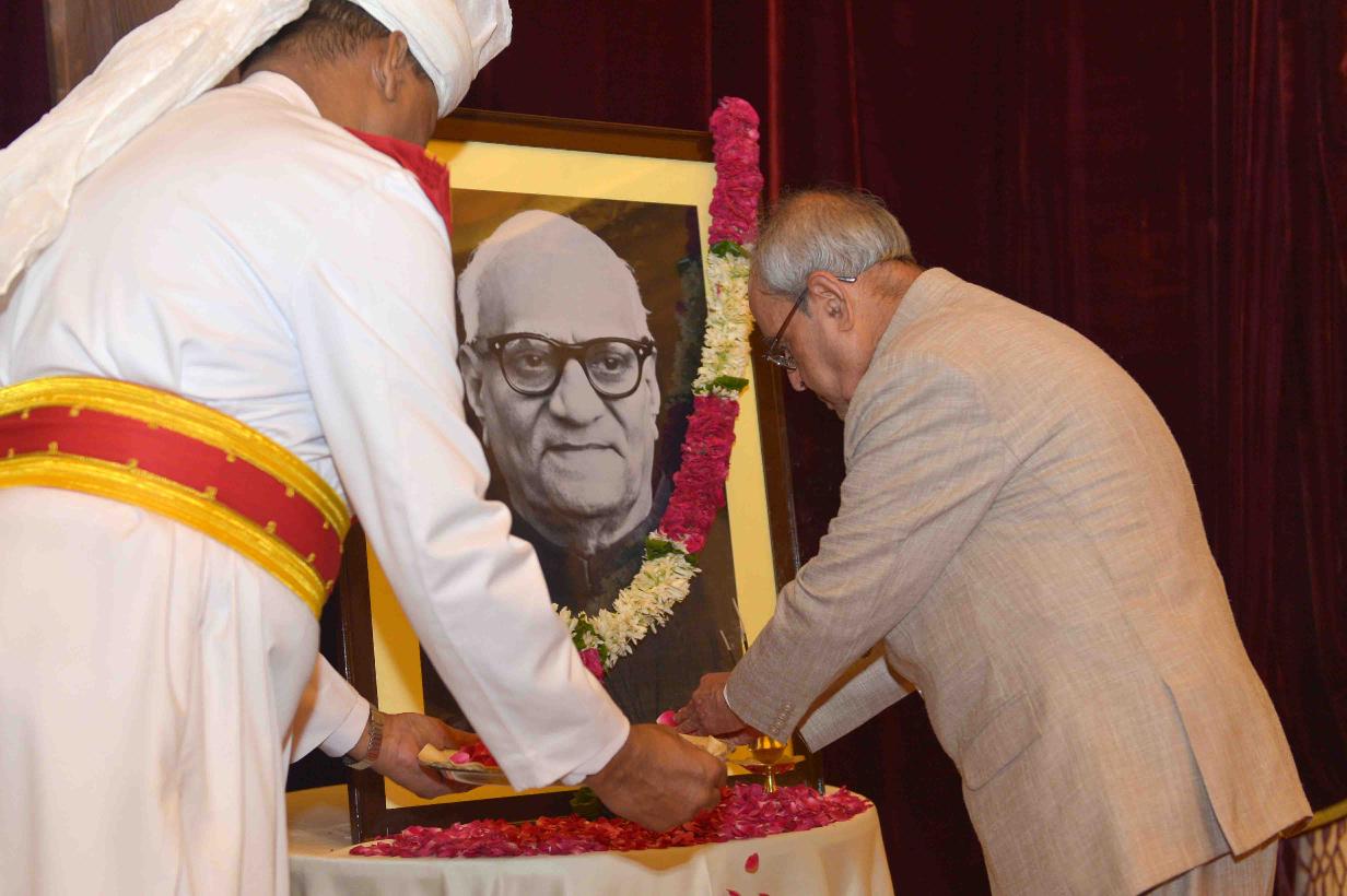 The President of India, Shri Pranab Mukherjee paying Floral Tributes at the Portrait of Former President of India, Shri V.V. Giri on the occasion of his Birth Anniversary, at Rashtrapati Bhavan on August 10, 2016.