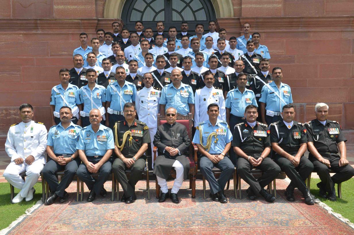 The President of India, Shri Pranab Mukherjee with the Inter-Services Provost Personnel, at Rashtrapati Bhavan on August 15, 2016.