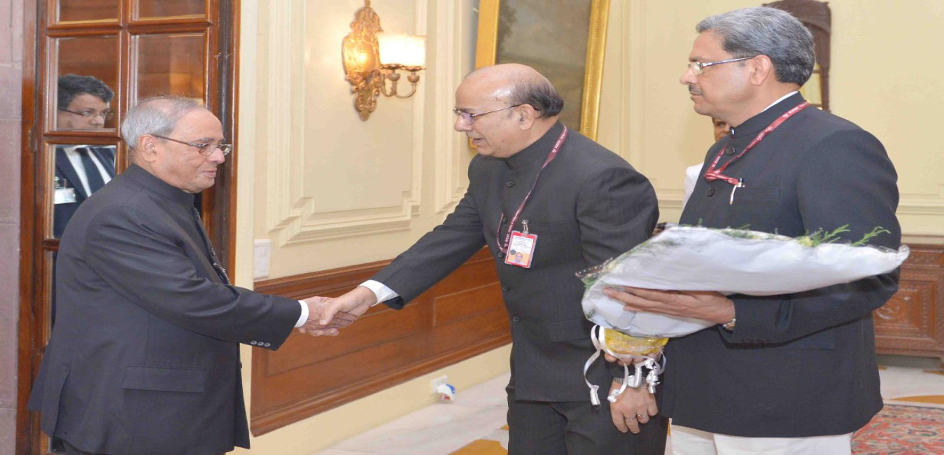 The President of India, Shri Pranab Mukherjee meeting with Maharaja Gaj Singh of Jodhpur, President & Shri Vijai Lal, Vice President, Indian Heritage Hotels Association, at Rashtrapati Bhavan on August 06, 2016.