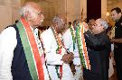 The President of India, Shri Pranab Mukherjee felicitating Freedom Fighters during At Home Reception hosted to them, at Rashtrapati Bhavan on August 09, 2016.