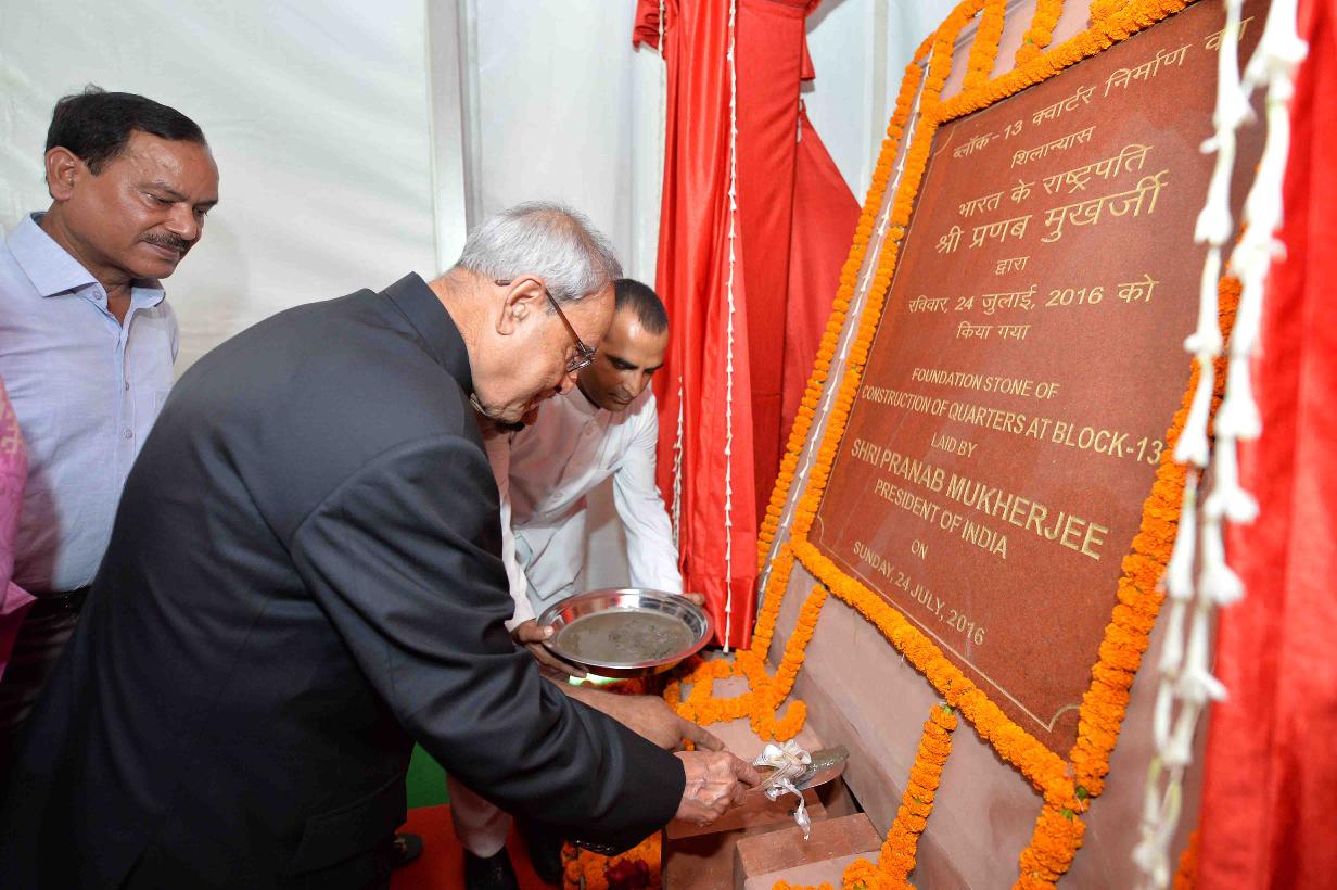 The President of India, Shri Pranab Mukherjee laying the Foundation Stone for Construction of Type - II & Type - III Residential Units at Block No. 13, Schedule-B, President s Estate on July 24, 2016.