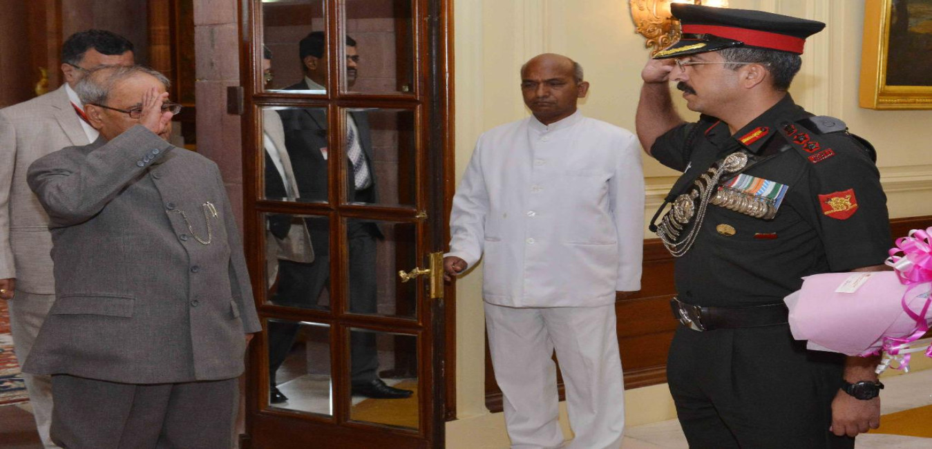 The President of India, Shri Pranab Mukherjee meeting with Shri Manoj Chauhan, at Rashtrapati Bhavan on June 30, 2016.