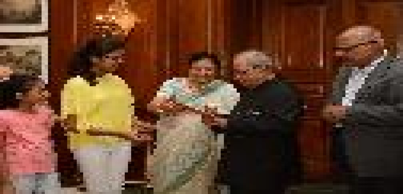 The President of India, Shri Pranab Mukherjee meeting with Ms. Dipanwita Mukhopadhyay (Prabrajika Panchhi Prakashmayee) from Uttarkashi, at Rashtrapati Bhavan on June 28, 2017.