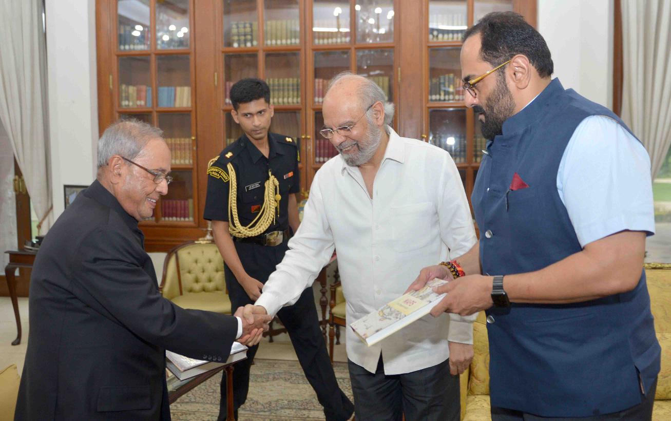 The President of India, Shri Pranab Mukherjee receiving a copy of the book ''Advice & Dissent: My Life in Public Service'' from Dr. Y. Venugopal Reddy, former Governor, Reserve Bank of India, at Rashtrapati Bhavan on June 28, 2017.