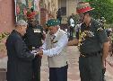 The President of India, Shri Pranab Mukherjee in Group Photographs with the Military Band of Signals Corps Training Centre, at Rashtrapati Bhavan on June 28, 2017.