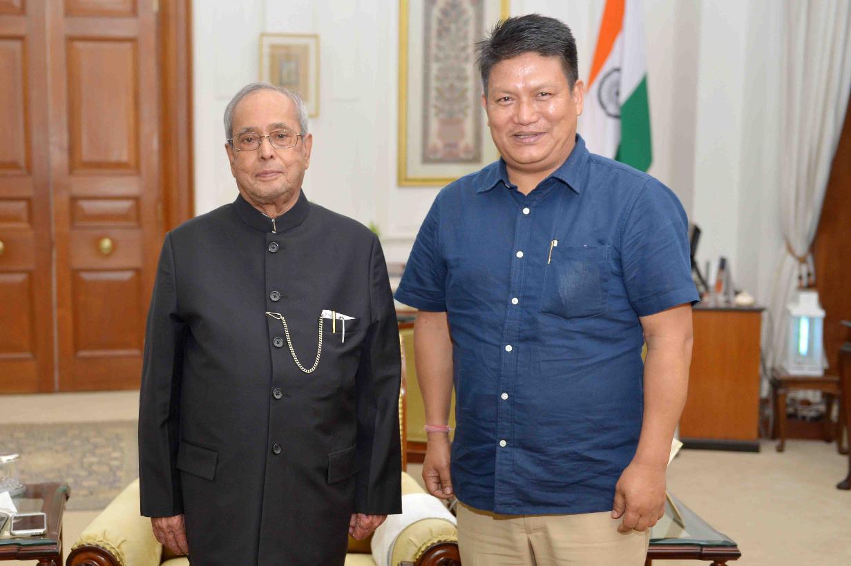 The President of India, Shri Pranab Mukherjee meeting with Shri Swaraj Thapa from Darjeeling, at Rashtrapati Bhavan on June 28, 2017.