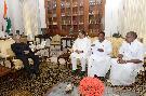 The President of India, Shri Pranab Mukherjee meeting with Shri V. Narayanasamy, Chief Minister of Puducherry alongwith Shri Namasivayam, PWD Minister, Puducherry and Shri Mukul Wasnik, former Union Minister, at Rashtrapati Bhavan on June 26, 2017.
