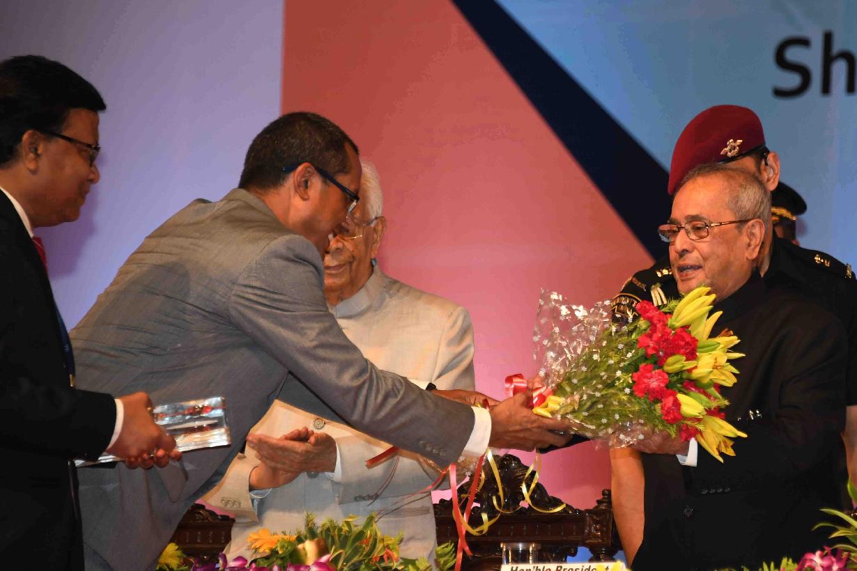 The President of India, Shri Pranab Mukherjee presenting the Lakshmipat Singhania - IIM Lucknow National Leadership Awards, in New Delhi on June 27, 2017.