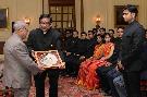 The President of India, Shri Pranab Mukherjee meeting with Bro. Monachan K.K., Principal alongwith Ms. Sukriti Gupta, All India Topper of CBSE Class XII with other students and teachers from Montfort School, Delhi, at Rashtrapati Bhavan on May 30, 2016.