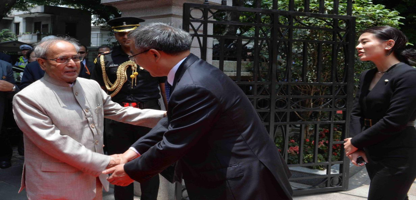 The Party Secretary of Guangdong, Mr. Hu Chunhua calling on the President of India, Shri Pranab Mukherjee at Guangdong Foreign Affairs Club, in Guangzhou, People s Republic of China on May 25, 2016.