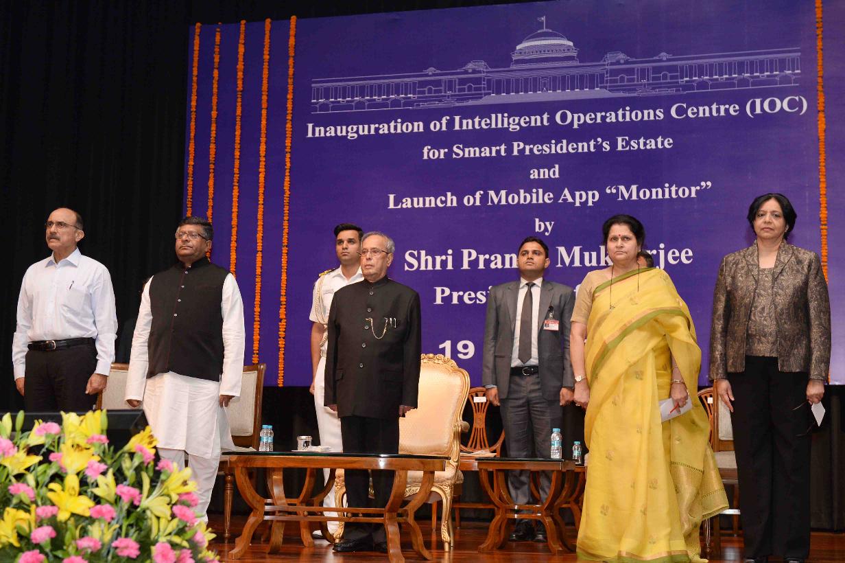 The President of India, Shri Pranab Mukherjee launching the Mobile App 'Monitor' for Smart President's Estate, at Auditorium, Rashtrapati Bhavan Cultural Centre on May 19, 2016.
