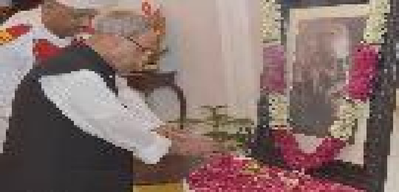 The President of India, Shri Pranab Mukherjee paying homage at the portrait of Gurudev Rabindranath Tagore on the occasion of his 155th birth anniversary at Rashtrapati Bhavan on May 08, 2016.