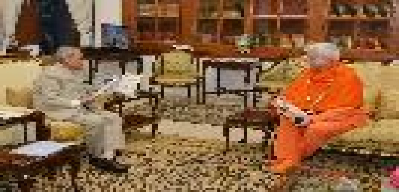 The President of India, Shri Pranab Mukherjee meeting with HH Jagatguru Amrta Suryananda Maharaja, President, European Yoga Confederation, at Rashtrapati Bhavan on May 10, 2016.
