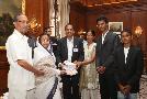 The President of India, Smt Pratibha Devisingh Patil interacting with Shri Ashok D Goray and others at Rashtrapati Bhavan in New Delhi on June 14, 2012