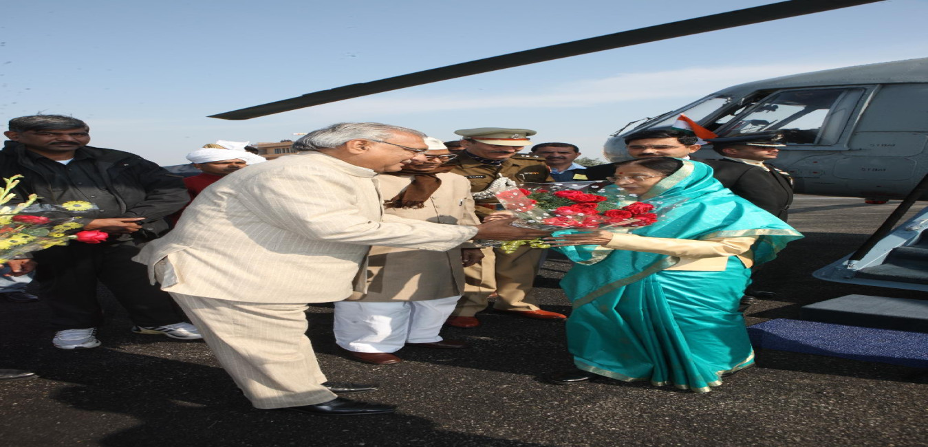 The President of India, Smt Pratibha Devisingh Patil being welcomed by the Chief Minister of Haryana, Shri Bhupinder Singh Hooda at Panipat Helipad in Haryana on Jan 14, 2012
