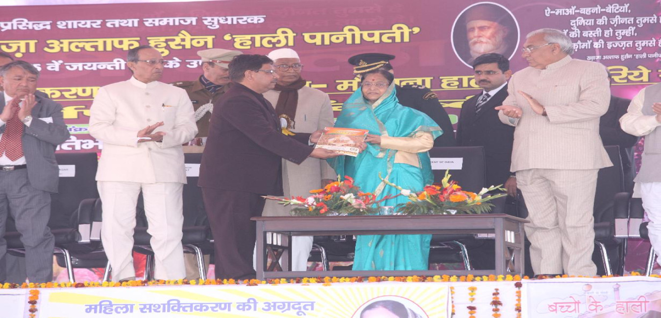 The President of India, Smt Pratibha Devisingh Patil inaugurating the International Symposium on the theme, 'Empowerment of Women and the Girl Child' and receiving the first copies of books and Compact Discs on Maulana Hali from the Chief Minister of Haryana, Shri Bhupinder Singh Hooda at Panipat in Haryana on Jan 14, 2012
