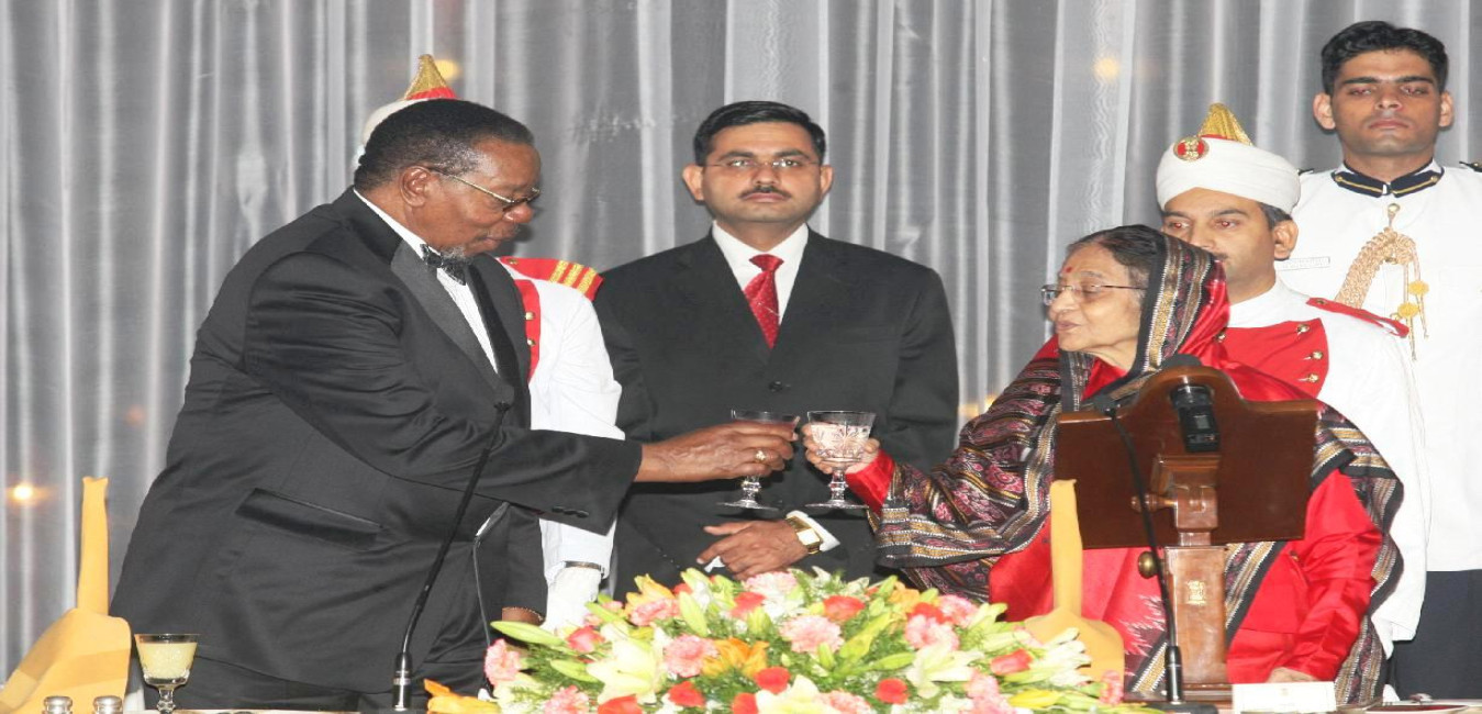 The President of India, Smt Pratibha Devisingh Patil at the Banquet Hosted in Honour of the President of the Republic of Malawi, HE Prof Bingu Wa Muthrika at Rashtrapati Bhavan in New Delhi on Nov 03, 2010