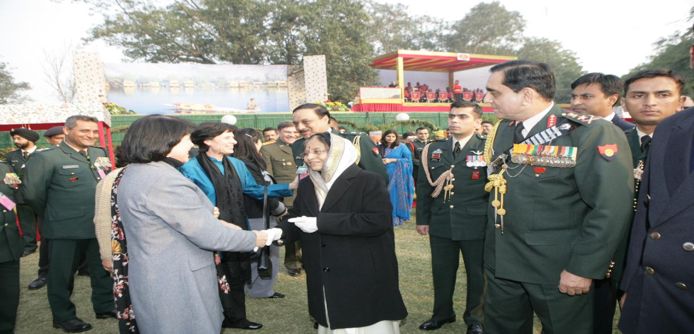 The President of India, Smt Pratibha Devisingh Patil during the Army Day Reception 2010 hosted at the Residence of the Chief of Army Staff, General Deepak Kapoor at Army House in New Delhi on Jan 15, 2010