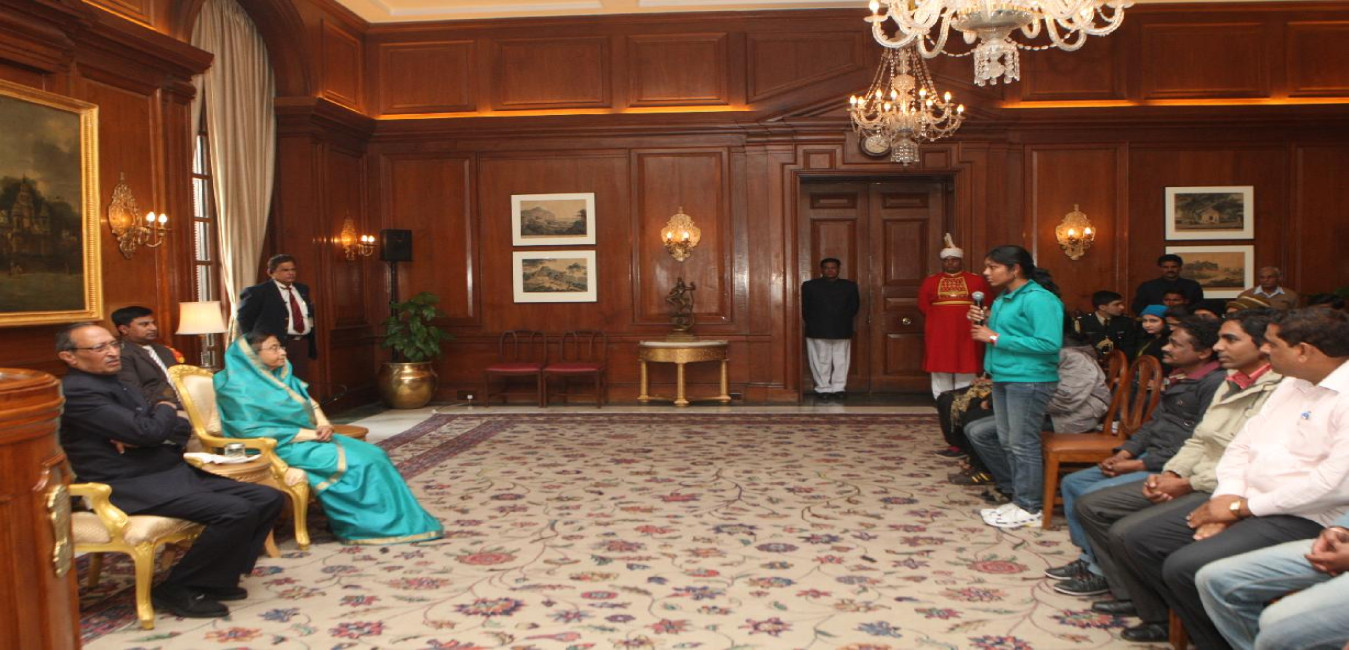 The President of India, Smt Pratibha Devisingh Patil interacting with the Delegation from Shri Neelkanth Vyayam Mandal, Amravati at Rashtrapati Bhavan in New Delhi on Jan 12, 2012
