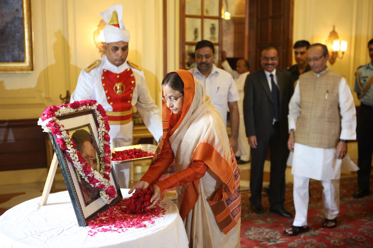 The President of India, Smt Pratibha Devisingh Patil paying floral tributes on the portrait of Kavivar Gopal Singh 'Nepali' on the occasion of his Birth Centenary Celebration at Rashtrapati Bhavan in New Delhi on 26 May, 2012