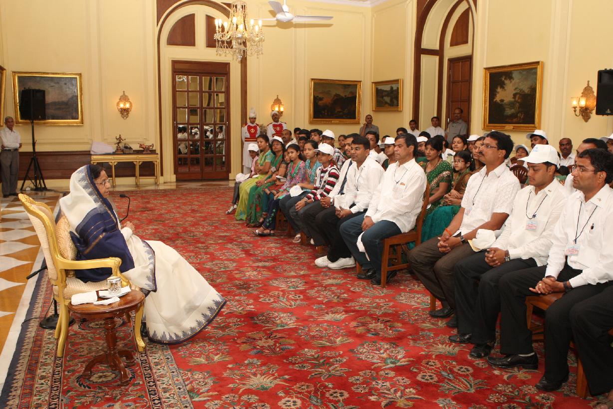 The President of India, Smt Pratibha Devisingh Patil interacting with Mr Gaurav R Lunawat and others at Rashtrapati Bhavan in New Delhi on June 20, 2011