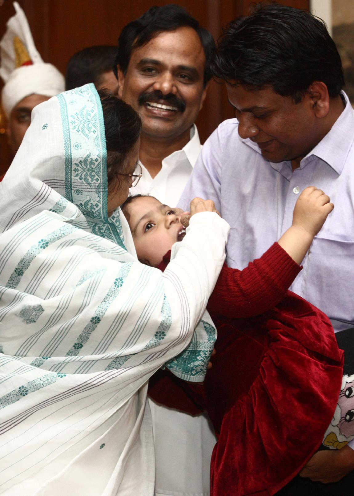 The President of India, Smt Pratibha Devisingh Patil administering Polio Drops to a Child at the Inauguration of the National Immunization Day at Rashtrapati Bhavan in New Delhi on Jan 09, 2010