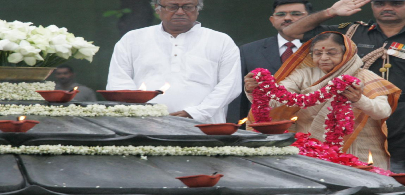 The President of India, Smt Pratibha Devisingh Patil paying floral tributes at Vir Bhoomi the Samadhi of the former Prime Minister, late Shri Rajiv Gandhi on his 66th birth anniversary in New Delhi on Aug 20, 2010