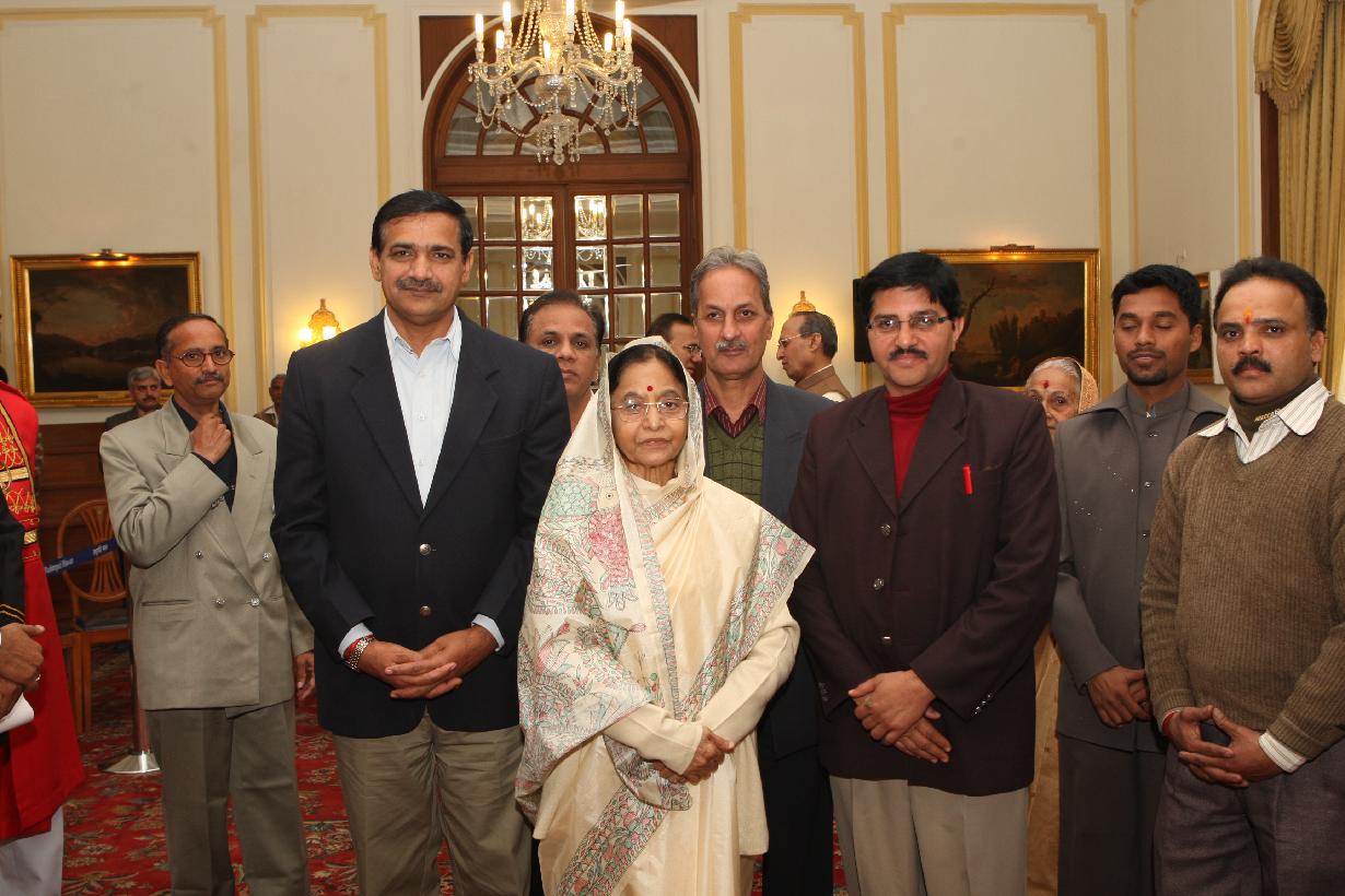 The President of India, Smt Pratibha Devisingh Patil with Dr J B Rajput and others from Buldhana at Rashtrapati Bhavan in New Delhi on Jan 31, 2008