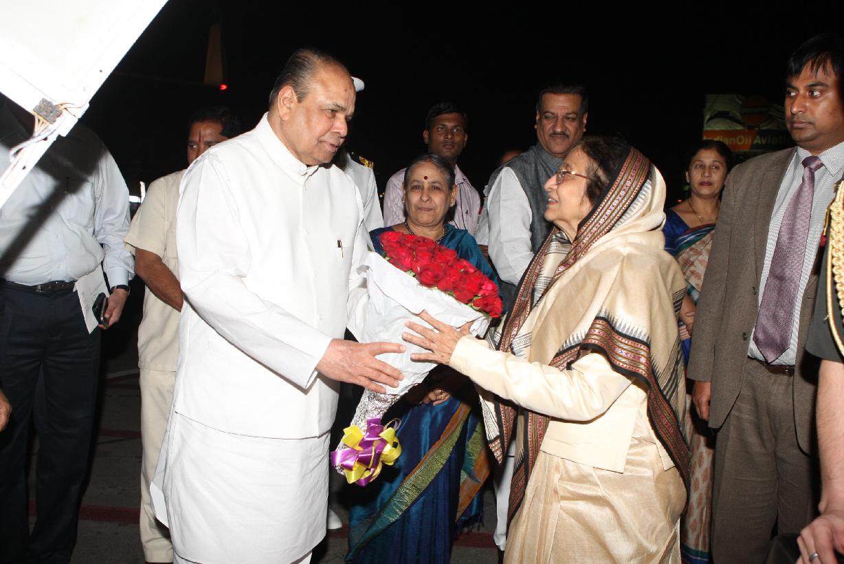 The President of India, Smt Pratibha Devisingh Patil being welcomed by the Governor of Maharashtra, Shri K Sankaranarayanan at Chhatrapati Shivaji International Airport of Mumbai in Maharashtra on March 12, 2012