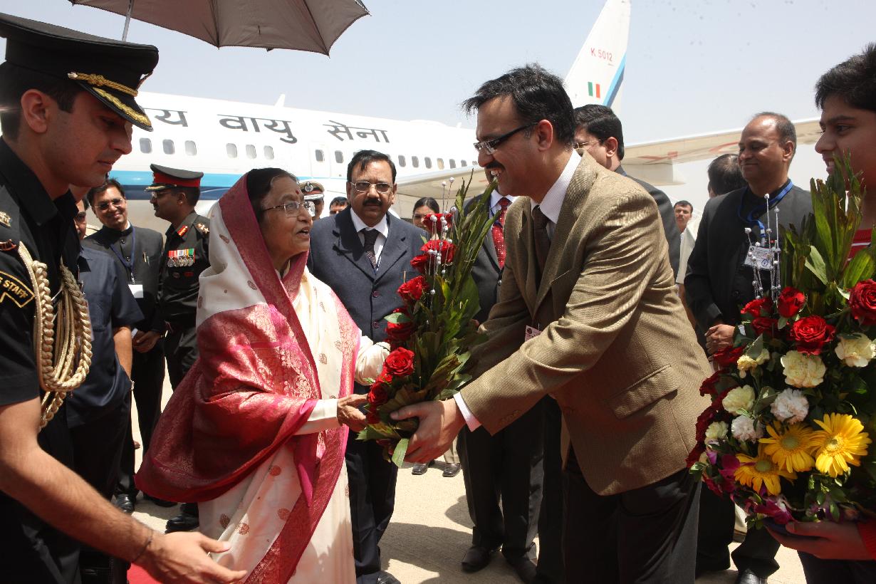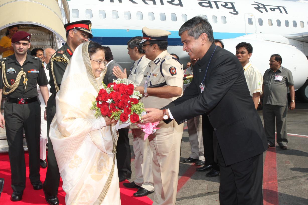 The President of India, Smt Pratibha Devisingh Patil before deperture from Chhatrapati Shivaji International Airport of Mumbai in Maharashtra on March 13, 2012