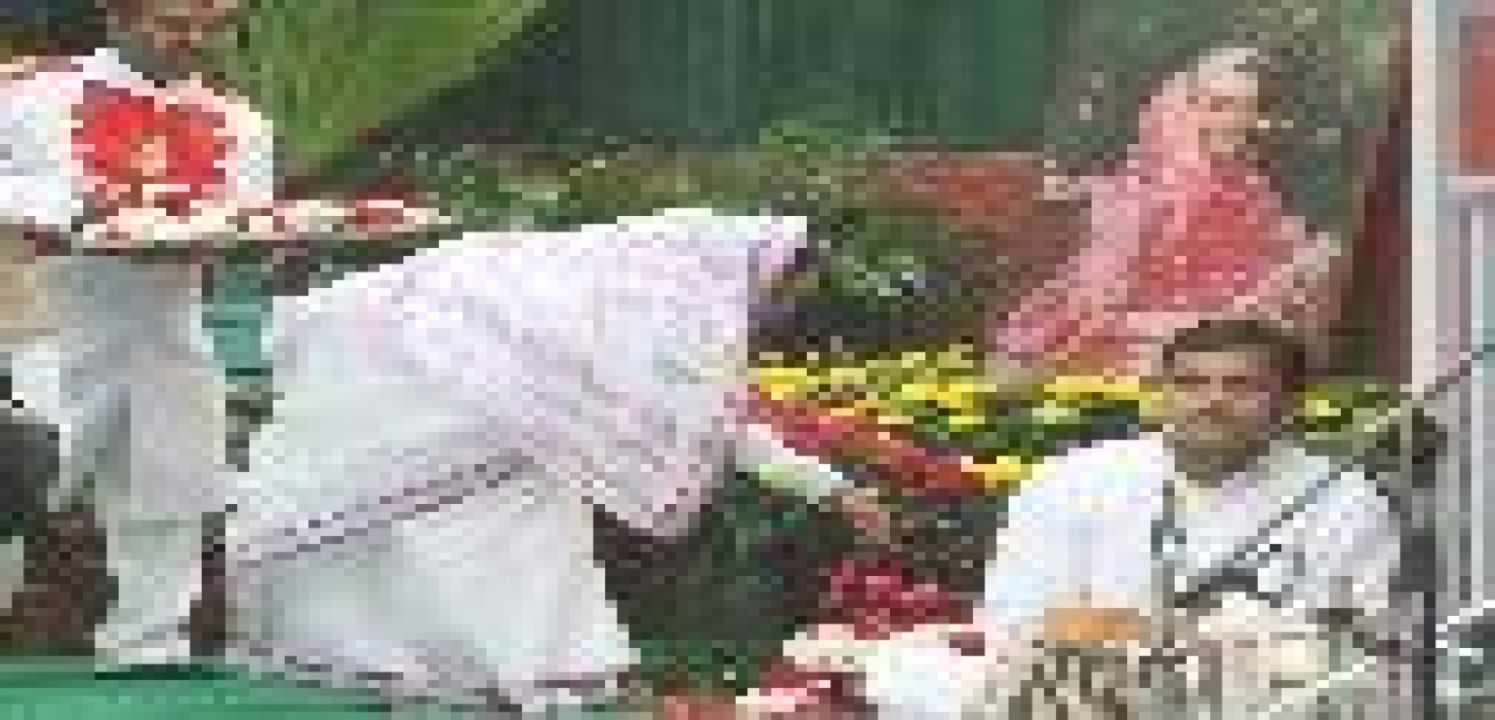 The President of India, Smt Pratibha Devisingh Patil paying homage at the Samadhi of Late Prime Minister of India, Shri Rajiv Gandhi on his 20th Anniversary of Martyrdom at Vir Bhoomi in New Delhi on May 21, 2011
