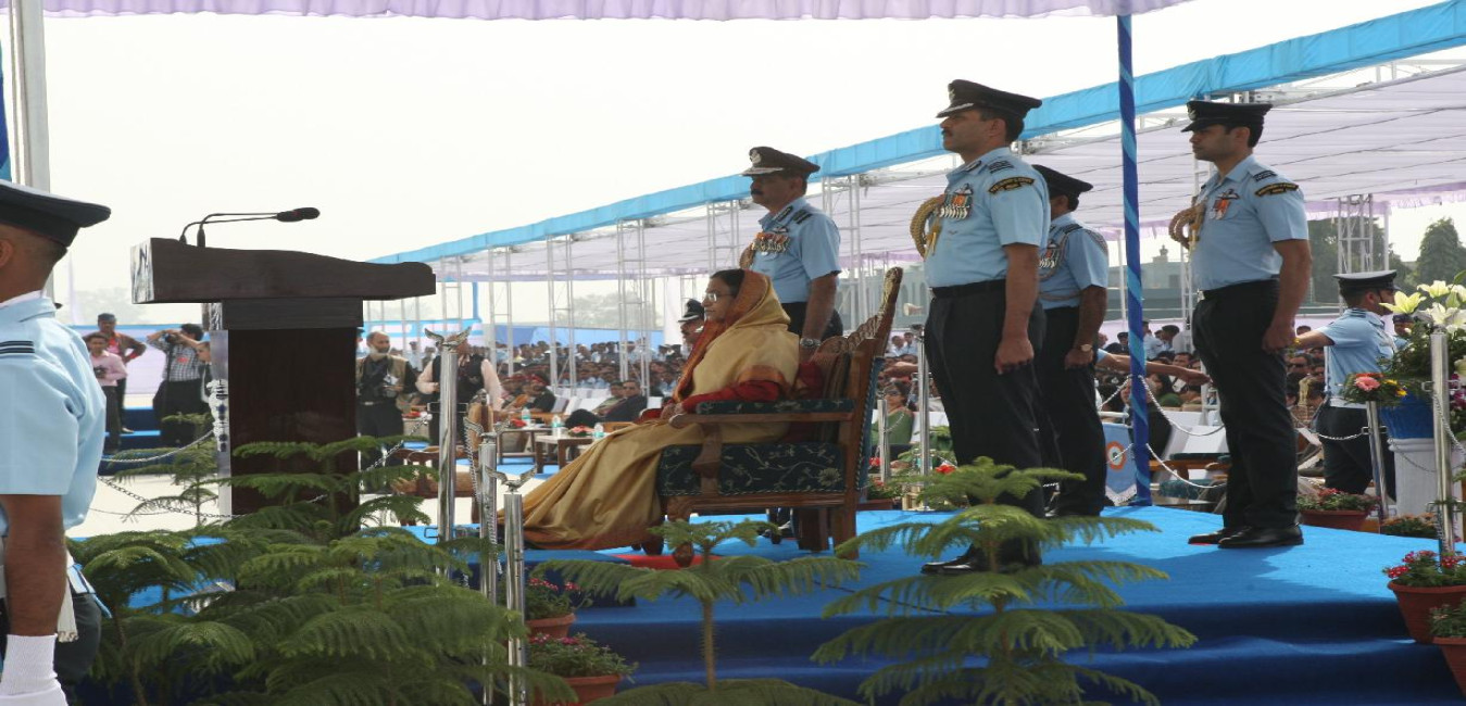The President of India, Smt Pratibha Devisingh Patil posing for a Group Photographs on the occasion of the presentation of Standards to the 24 Squadron and the 111 Helicopter Unit of the Indian Air Force at Bareilly in Uttar Pradesh on March 06, 2012