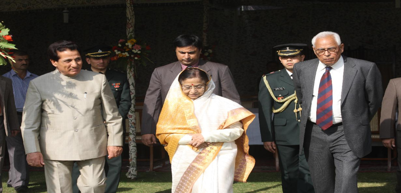 The President of India, Smt Pratibha Patil arriving at Jammu Raj Bhavan in Jammu and Kashmir on Nov 25, 2011