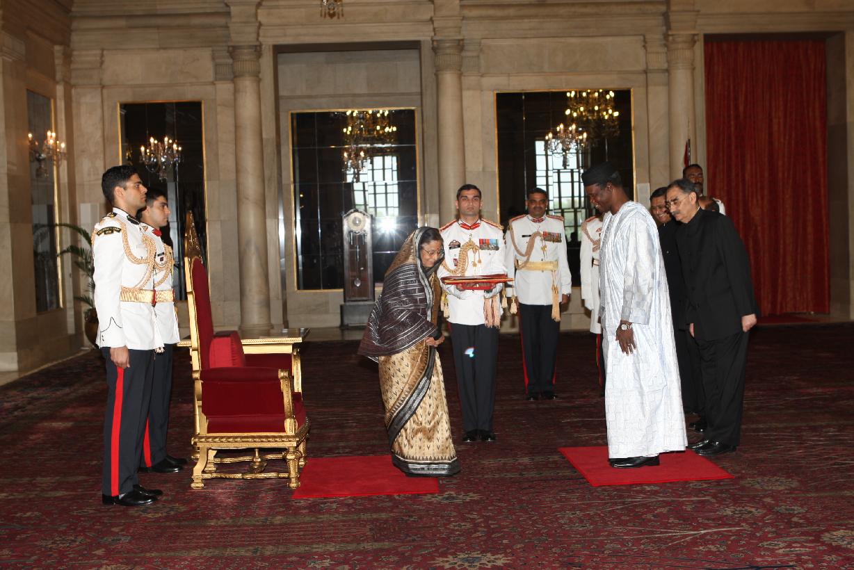 The Ambassador-Designate of Mali, His Excellency Mr Ousmane Tandia presenting his credentials to the President of India, Smt Pratibha Devisingh Patil at Rashtrapati Bhavan in New Delhi on Sep 29, 2010