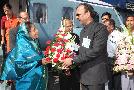 The President of India, Smt Pratibha Devisingh Patil being welcomed by the Development Commissioner, Shri P K Gupta at Diu Airport on Oct 03, 2009