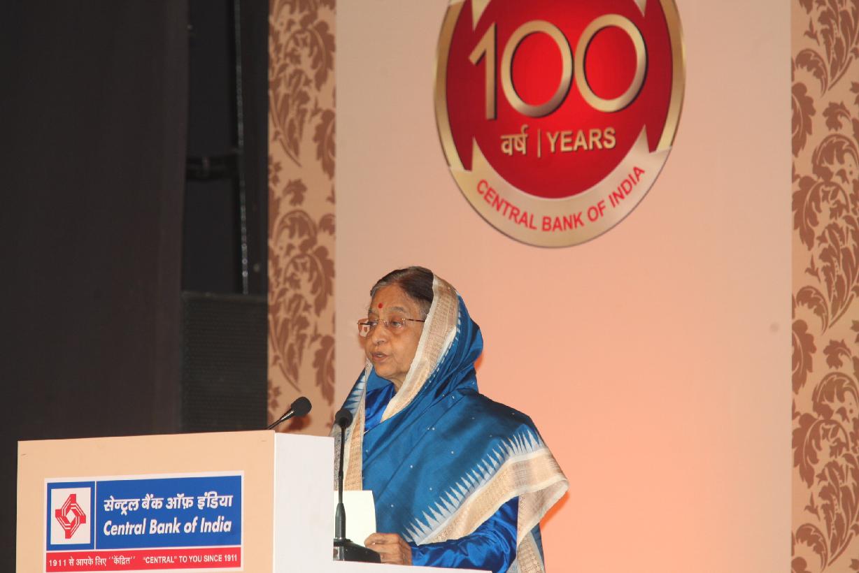 The President of India, Smt Pratibha Devisingh Patil releasing a Commemorative Stamp at a Function to Mark the Centenary of Central Bank of India at Mumbai in Maharashtra on Dec 23, 2010