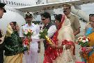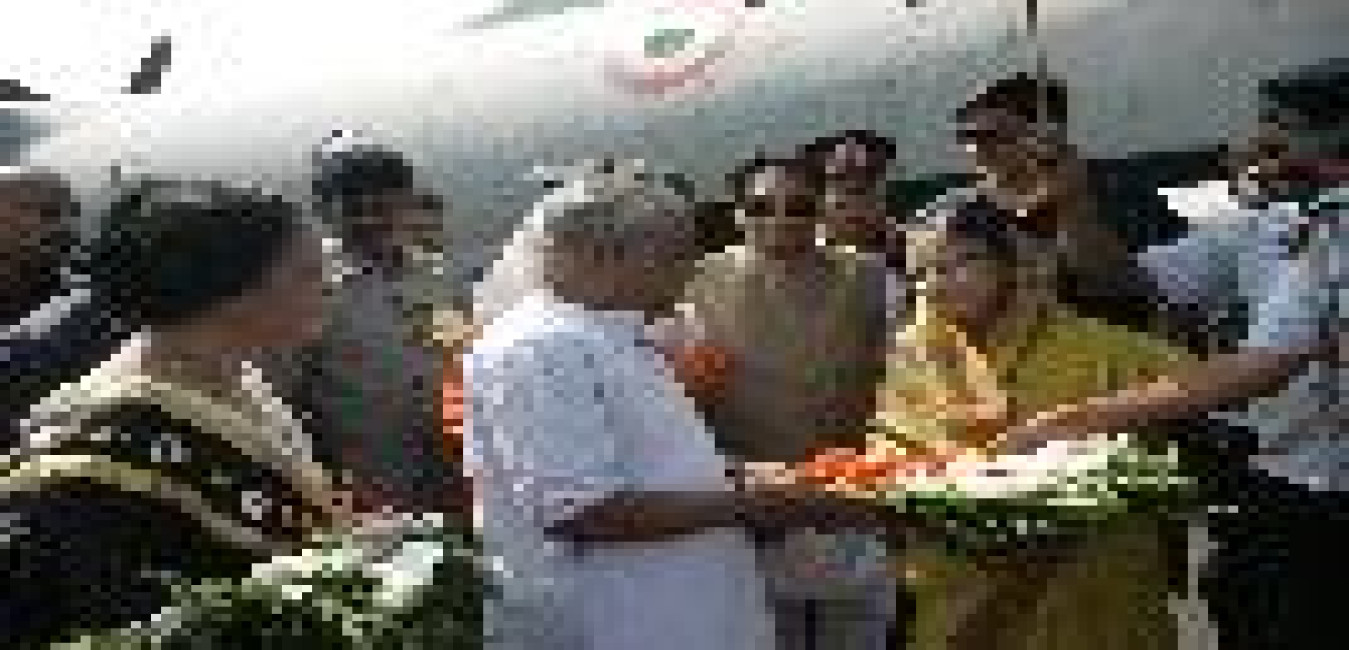 The President of India, Smt Pratibha Devisingh Patil being welcomed by the Governor of Kerala, Shri Ramkrishnan Suryabhan Gavai and the Chief Minister of Kerala, V S Achuthanandan at Kochi Airport in Kerala on Dec 27, 2009
