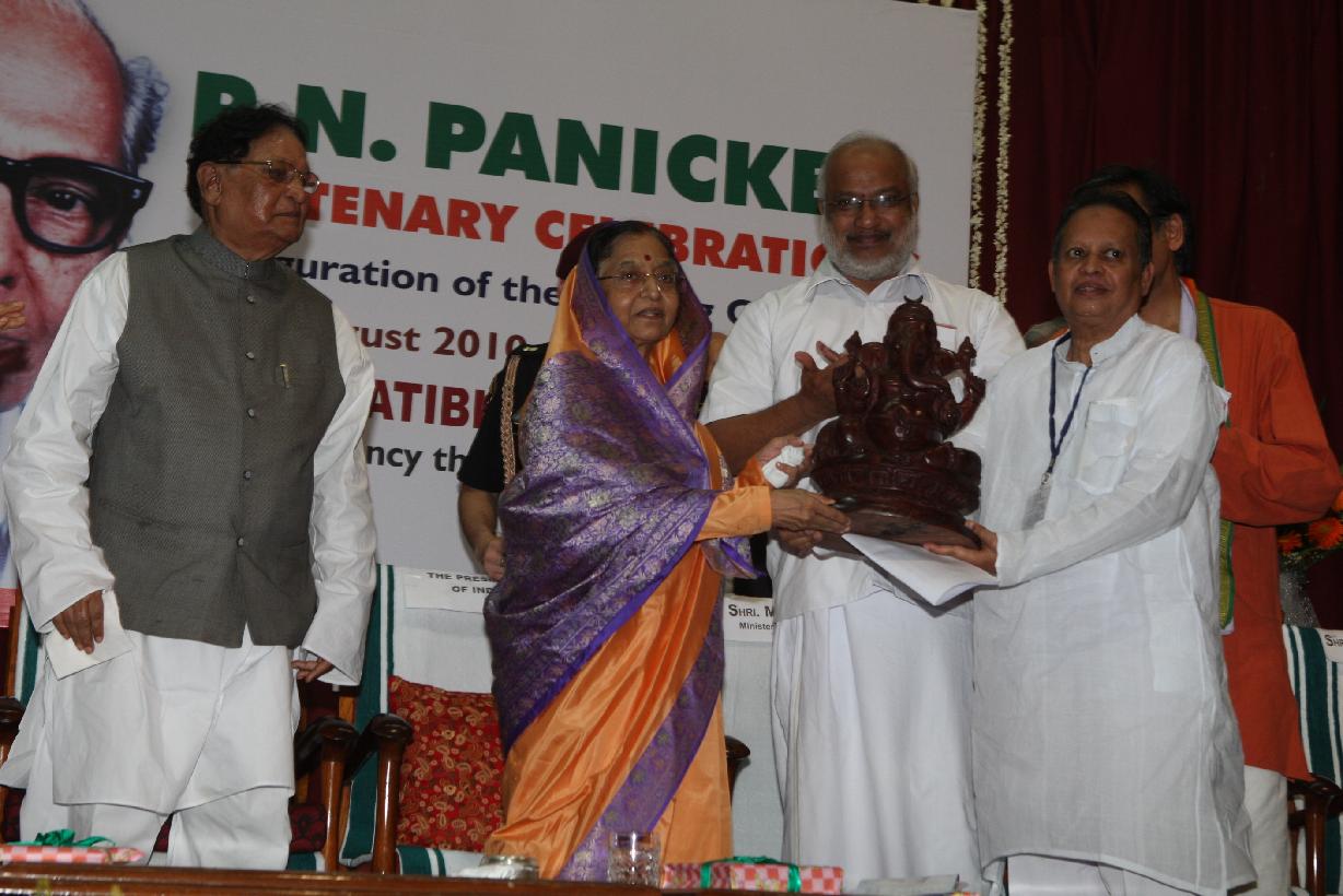 The President of India, Smt Pratibha Devisingh Patil presenting the first copy of the book on Shri P N Panicker, during the Inauguration of the Closing Ceremony of the P N Panicker Centenary Celebrations at Thiruvananthapuram in Kerala on Aug 13, 2010