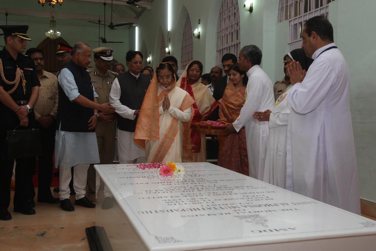 The President of India, Smt Pratibha Devisingh Patil paying her tributes at the Chapel at Bharananganam to St Alphonse at the Concluding function of the Birth Centenary Celebrations at Kochi in Kerala on Aug 12, 2010
