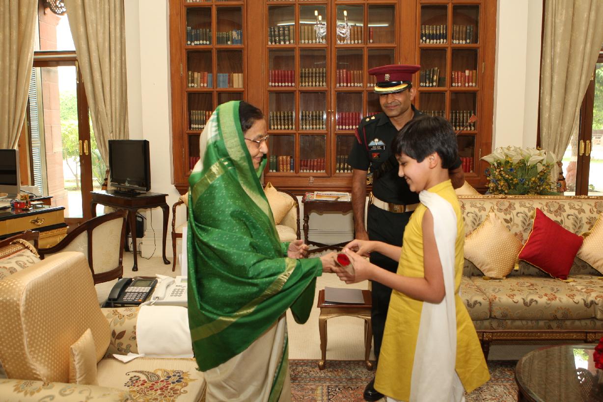 The President of India, Smt Pratibha Devisingh Patil at the farewell Call by Lt Col Ravinder Narwal and Family at Rashtrapati Bhavan in New Delhi on June 25, 2010