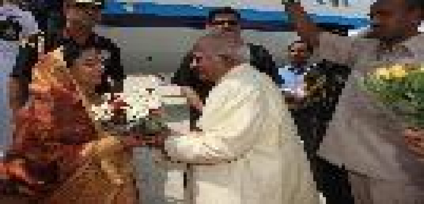 The President of India, Smt Pratibha Devisingh Patil being welcomed by the Governor of Rajasthan, Shri S K Singh at Jaipur Airport in Rajasthan on March 05, 2009