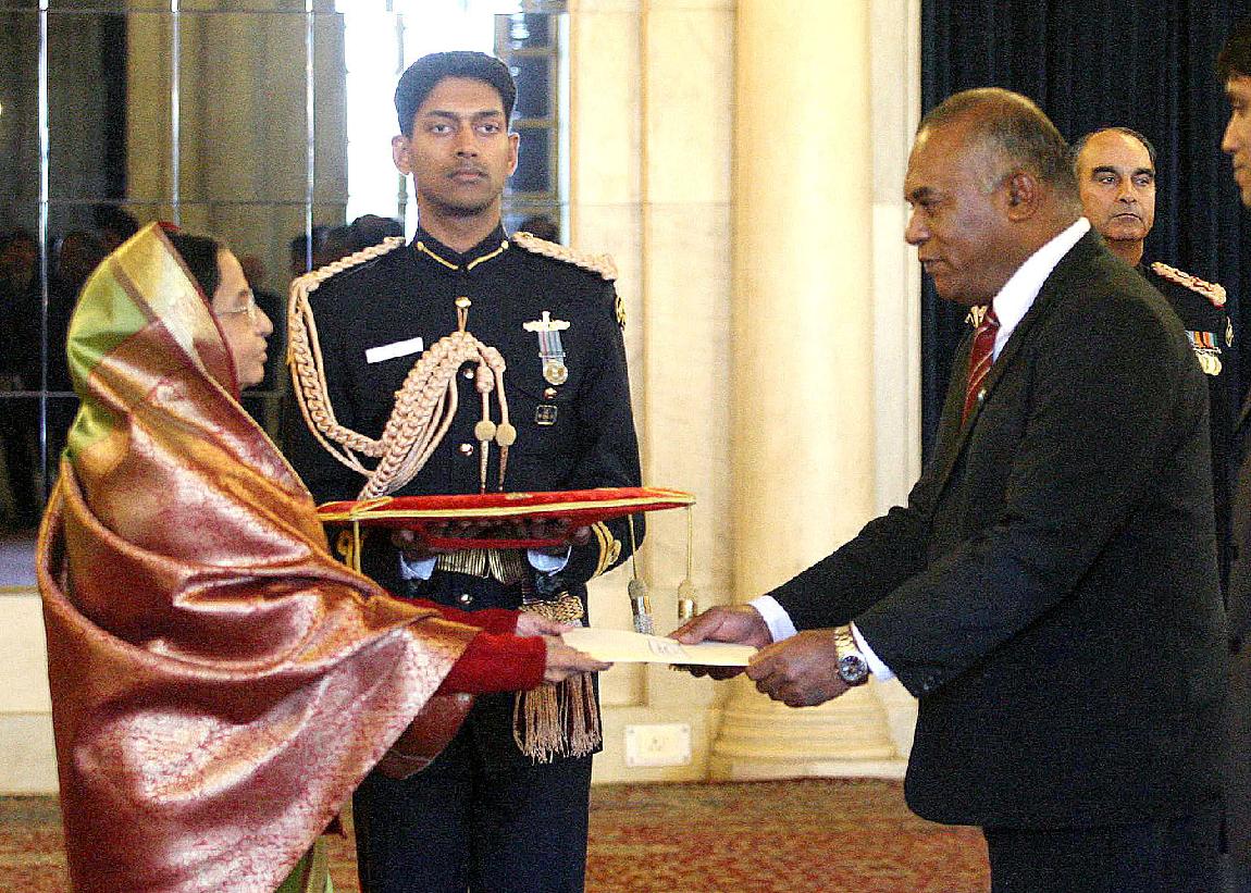 The High Commissioner-Designate of Fiji to India, HE Mr Savenaca Kaunisela presenting his credential to the President of India, Smt Pratibha Devisingh Patil at Rashtrapati Bhavan in New Delhi on Feb 13, 2008
