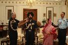 The President of India, Smt Pratibha Devisingh Patil pinning the Rank to Shri Surender Singh JCO-ADC at Rashtrapati Bhavan in New Delhi on Aug 16, 2008