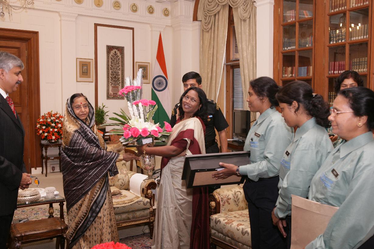 The President of India, Smt Pratibha Devisingh Patil interacting with Smt Urmila Ekka and others from Tejaswinis Group of Tata Steel, the Group is the Part of the Company s Efforts at Empowering its Women Employee from Socio Economically Weaker Section of Society at Rashtrapati Bhavan in New Delhi on March 17, 2010