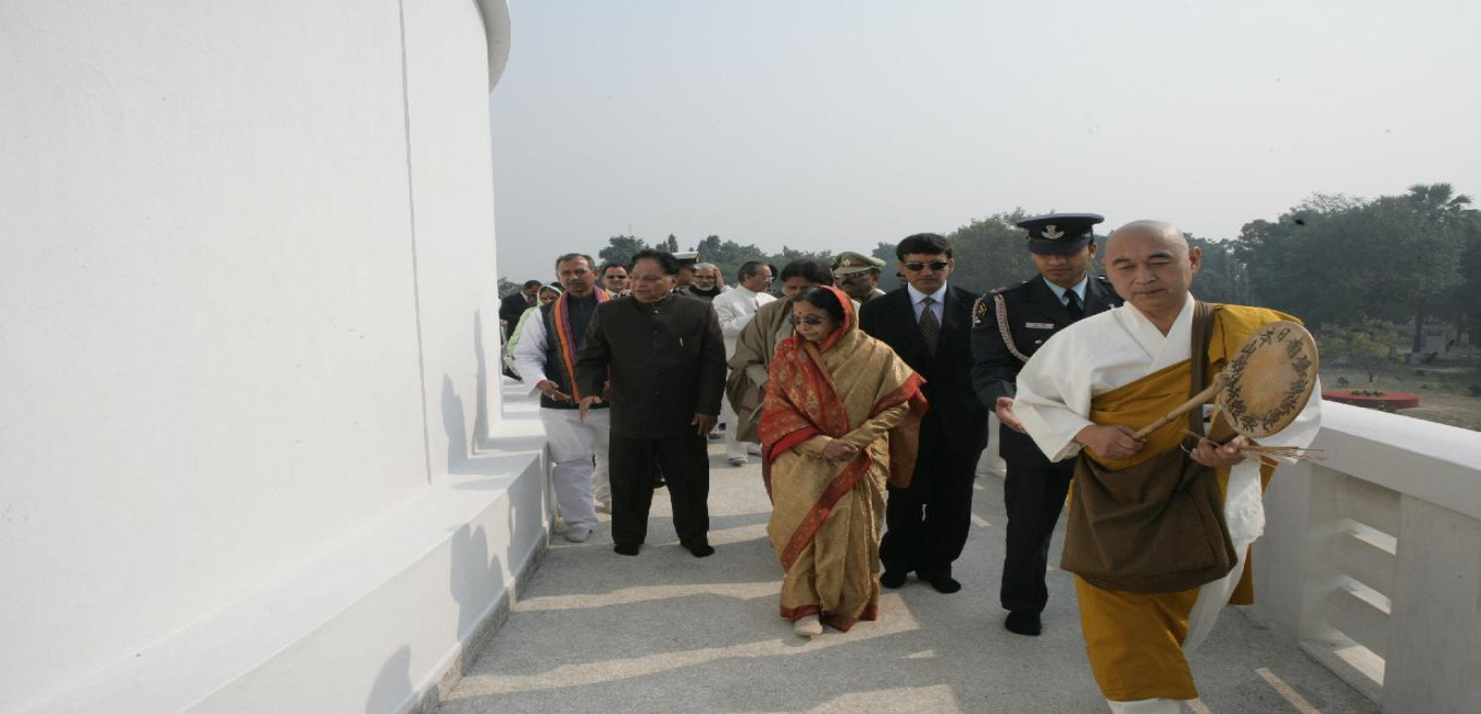 The President of India, Smt Pratibha Devisingh Patil during visit to Shanti Stupa near Vaishali in Bihar on Feb 16, 2008