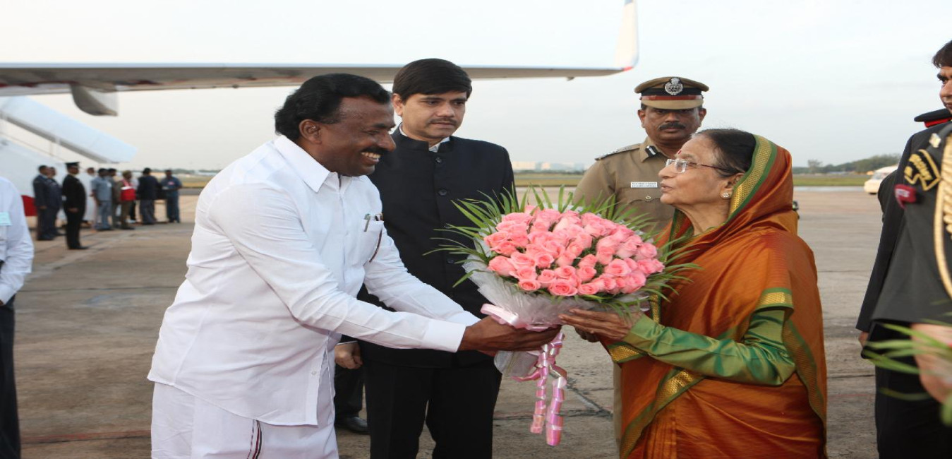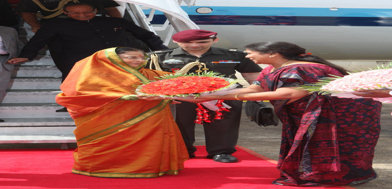 The President of India, Smt Pratibha Devisingh Patil during Arrival at Chennai Airport in Tamil Nadu on Jan 02, 2012