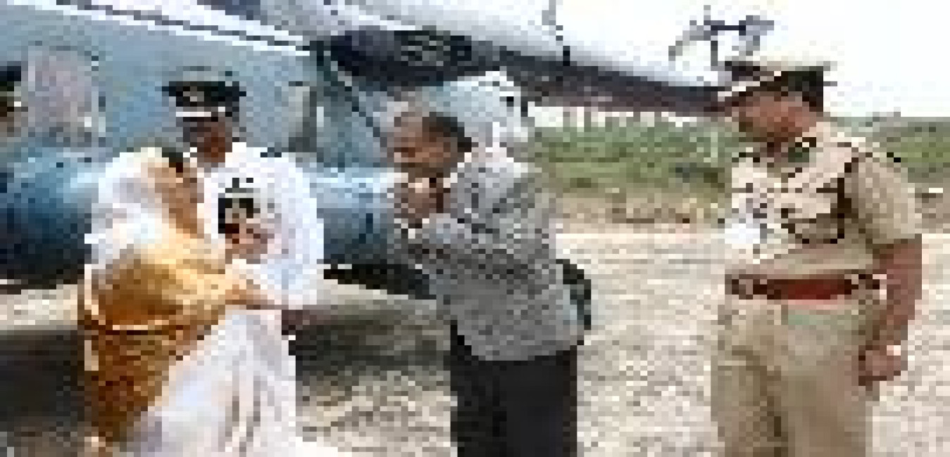 The President of India, Smt Pratibha Devisingh Patil arriving at Gachibowli Stadium Helipad at Hyderabad in Andhra Pradesh on July 04, 2011